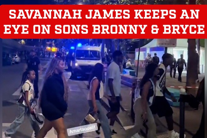Savannah James keeps an eye on Bronny and Bryce during date night